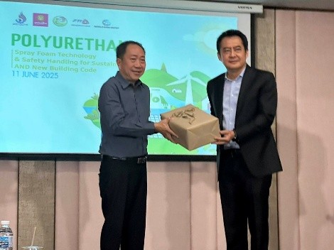 ท่านต่อมาจะเป็น คุณธนัญชัย ระวังวงค์ เนื้อหาที่บรรยายก็คือข้อมูลพื้นฐานมางเคมี โพลียูรีเทนโฟมและโพลีไอโซไซยานูเรทและผลิตภัณท์ทางเลือกเพื่อนทนแทน ตัวน้ำยาพ่นพียูโฟม 141B